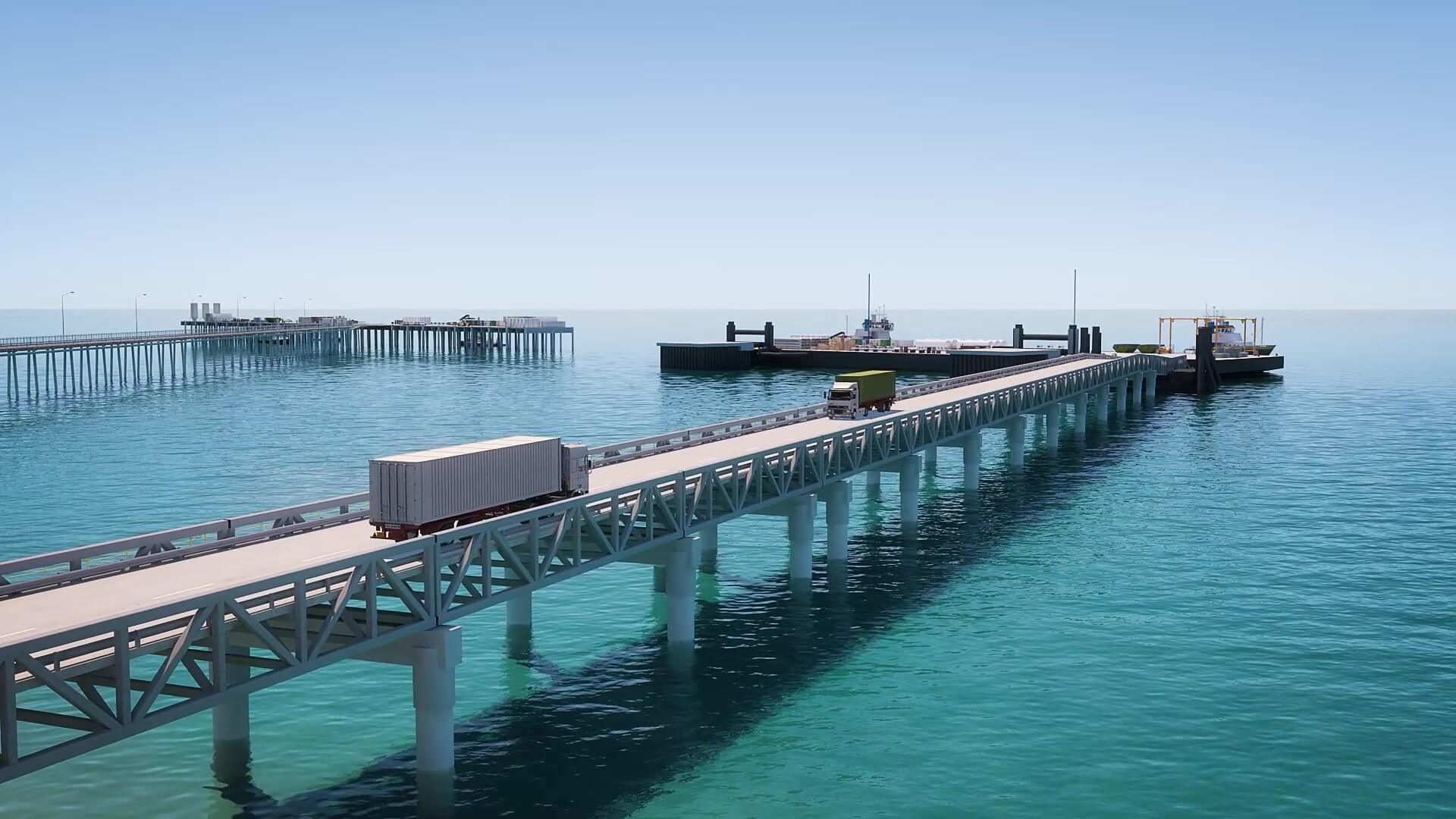 The new port infrastructure within the Port of Broome, incorporates a floating wharf linked to a fixed causeway, and will allow safe and efficient 24/7 operations regardless of tide depth - driving advanced solutions, improving efficiencies and reducing costs and carbon emissions.