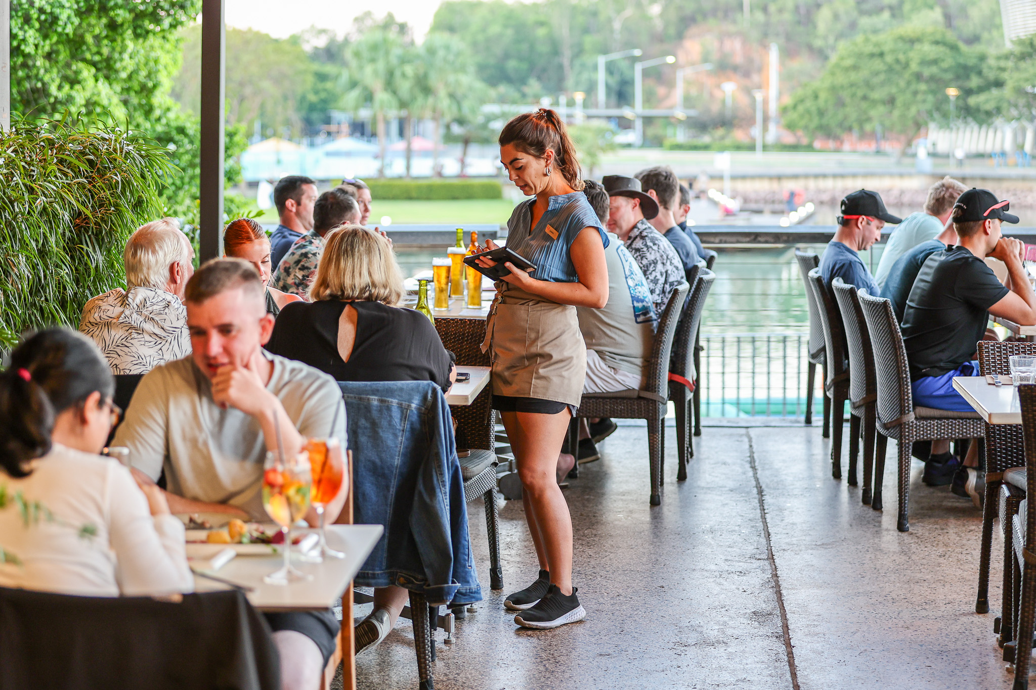 Wharf One Food & Wine is one of the newest restaurants at the Darwin Waterfront. The venue’s industrial décor is chic and welcoming, with every table offering spectacular water views of the lagoon and Darwin Harbour. Guests can choose between the alfresco area, which is undercover with fans, or the comfort of air-conditioned indoor seating.